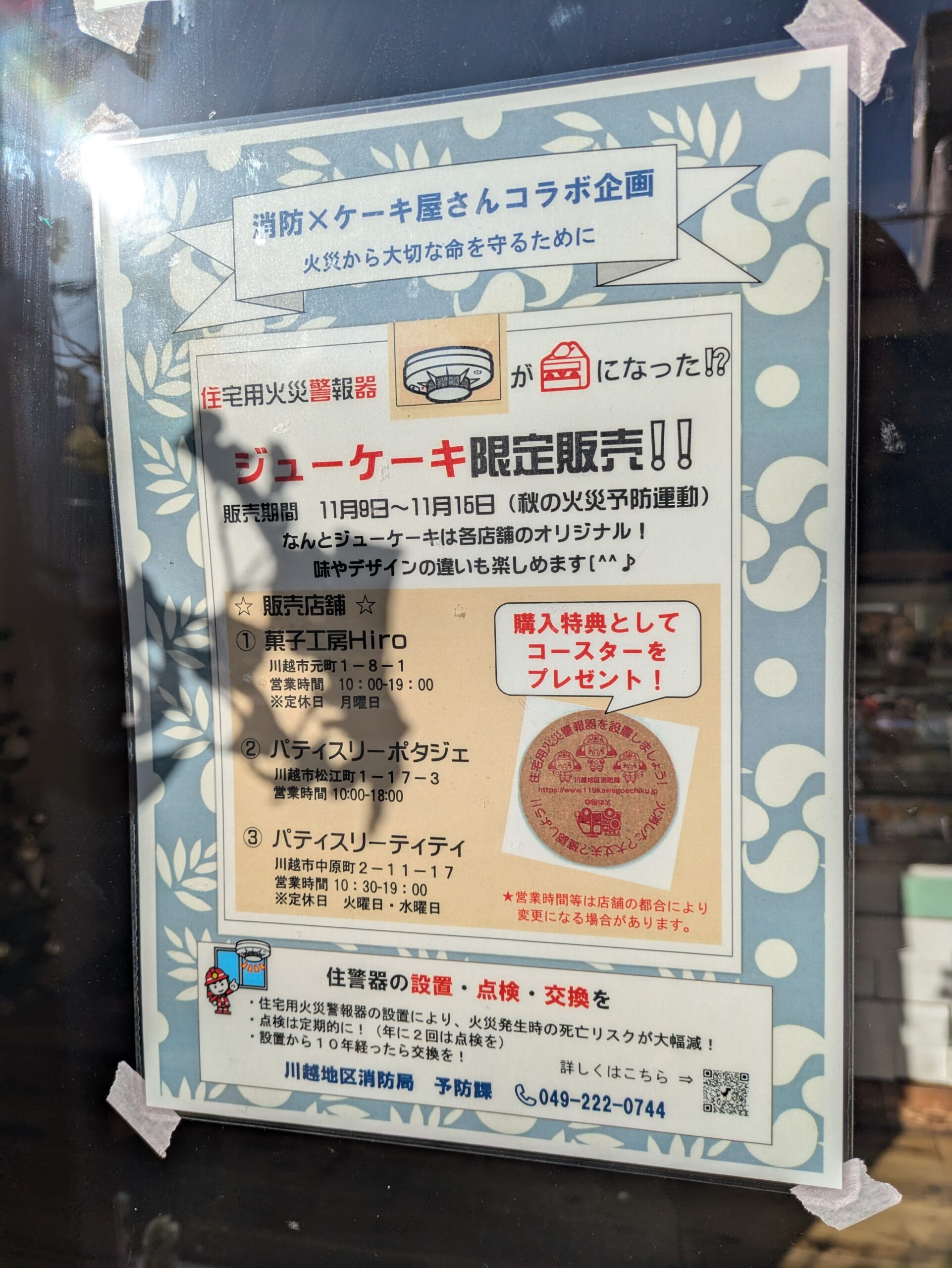 【川越市】消防×ケーキのコラボ!火災予防を呼びかける「ジューケーキ」が期間限定販売中です!