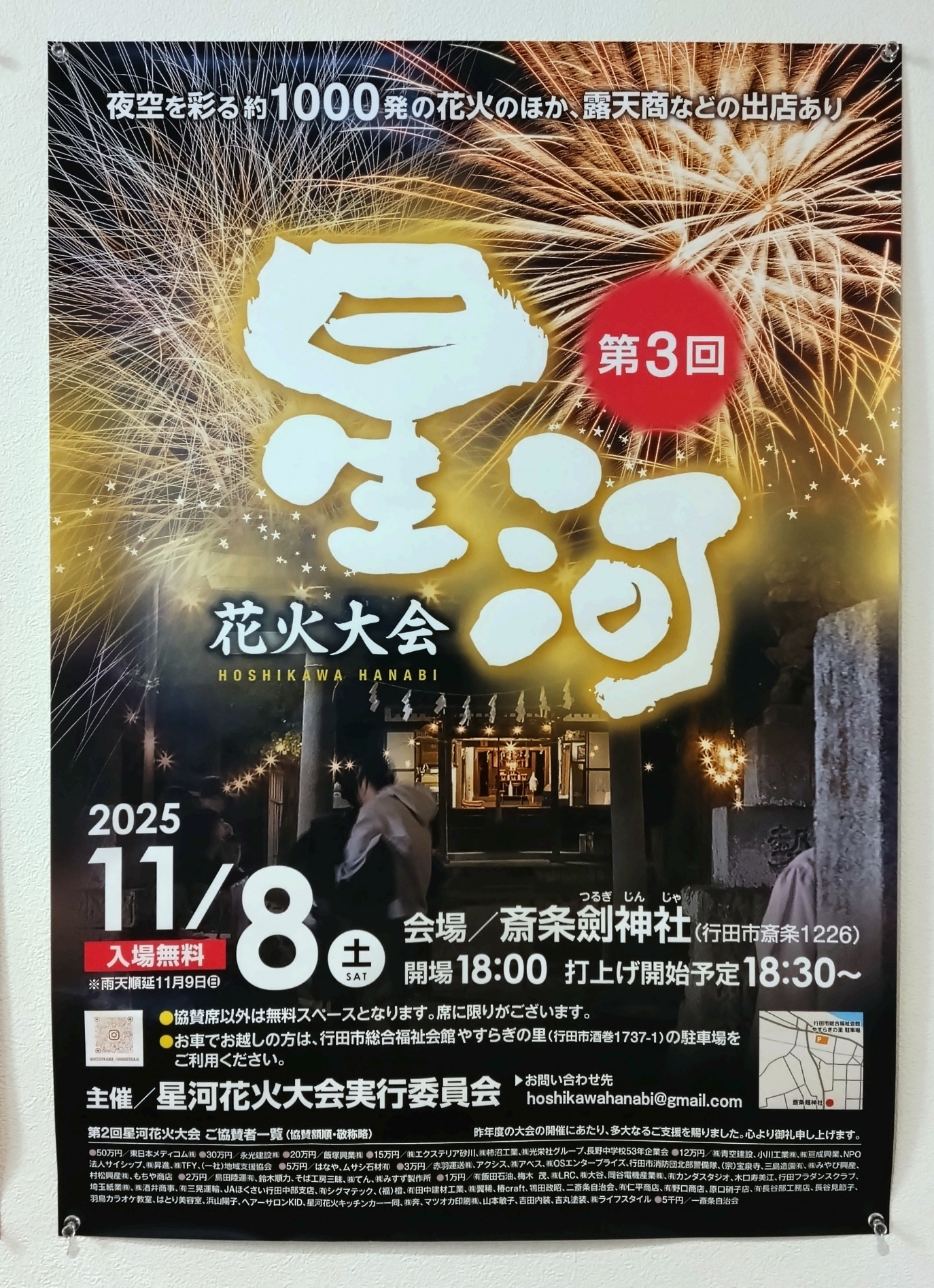 【行田市】過去最大1000発!第3回 星河花火大会(11月8日)が開催されます!見ど···