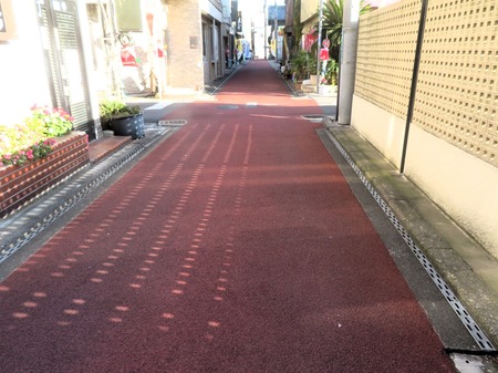 11月20日の14時32分。 右側の塀に午後の陽が当たっています。 塀には小さな穴があり、たくさんの光が道に落ちていました。 果ては左側の側溝、段の上···