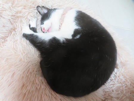 ときとして寝ているとき、 ごとう君は丸くもなります。 天井の電気の真下にいるもので、 白がとんで顏周辺の細部が分かりません。 ···