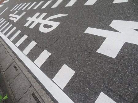 道路標示の「止まれ」です。 左の側溝寄りにあった「止まれ」を センター方向の右上に移動させたたようです。 見えづらいですが、もともとの文字の輪···