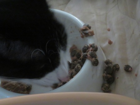 10月2日の16時13分。 食欲が旺盛な、ごとう君は舌の力が強いのか、 勢い余ってたくさん跳ね飛ばします。 それでも、さいごには器の内も外も きれいさ···